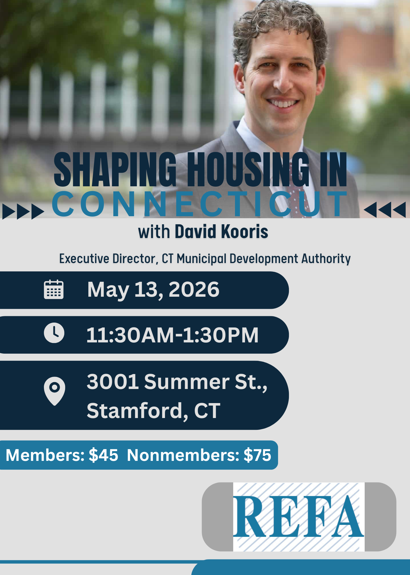Join David Kooris, Executive Director of CMDA, for a conversation on housing production, affordable housing, and the latest legislation shaping Connecticut. Hear practical insights on the challenges and opportunities impacting communities across the state.